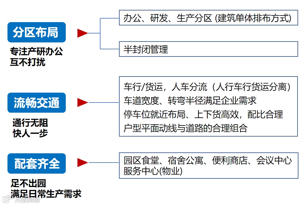 在创新驱动的时代,产业园区的功能已经不仅仅是为产业提供物理空间,更应通过体系化的园区配套和服务的打造,创造产业发展的最优环境,一个成熟的优质园区需要构建一个能满足产业研发、办公、管理等产业功能以及居住、餐饮、休闲、娱乐等生活功能的复合型生态空间。