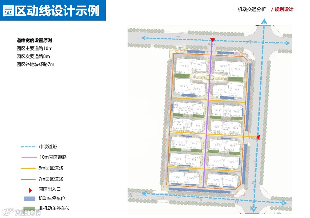 园区在入口处打造景观礼仪轴线,以绿色景观作为生态铺垫,营造入园仪式感。
