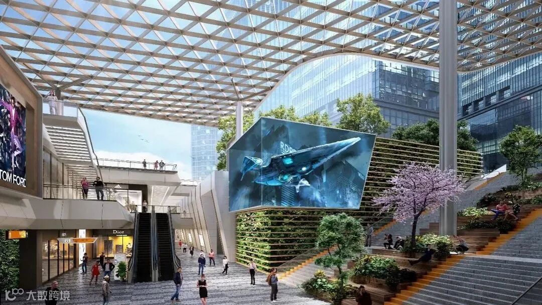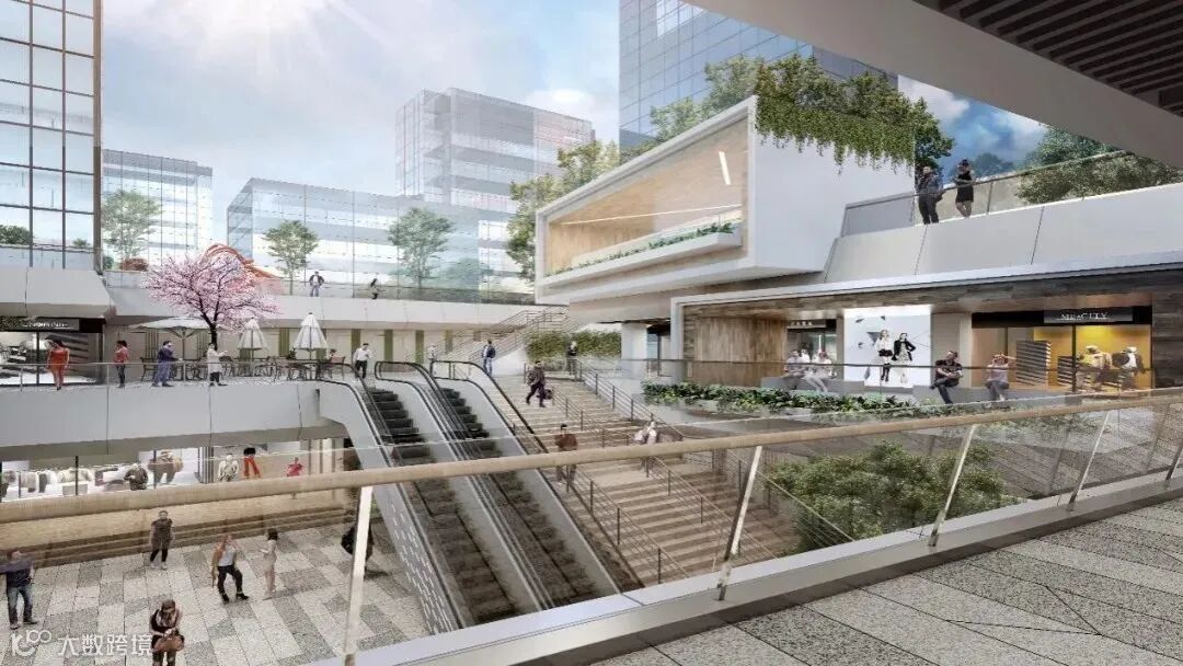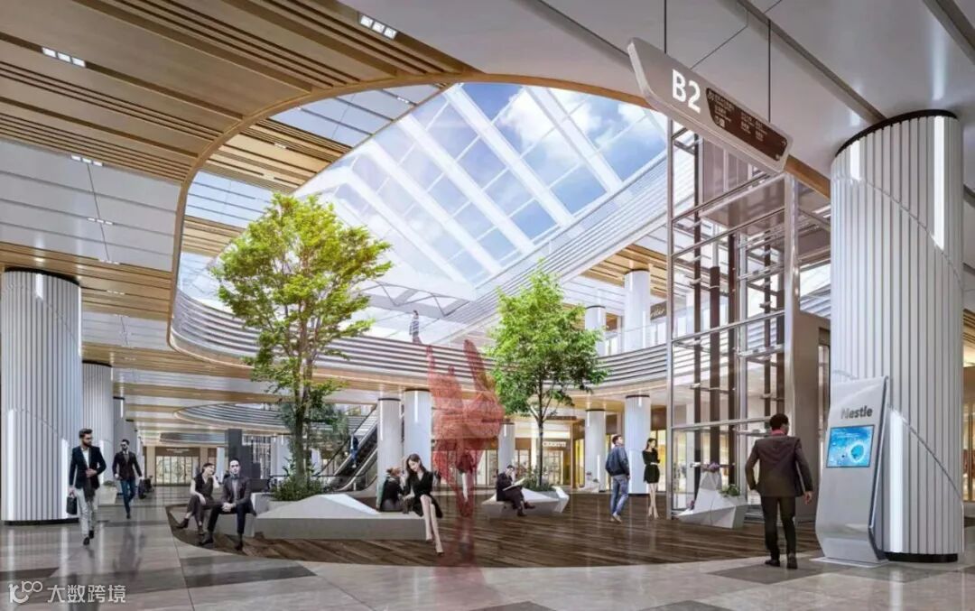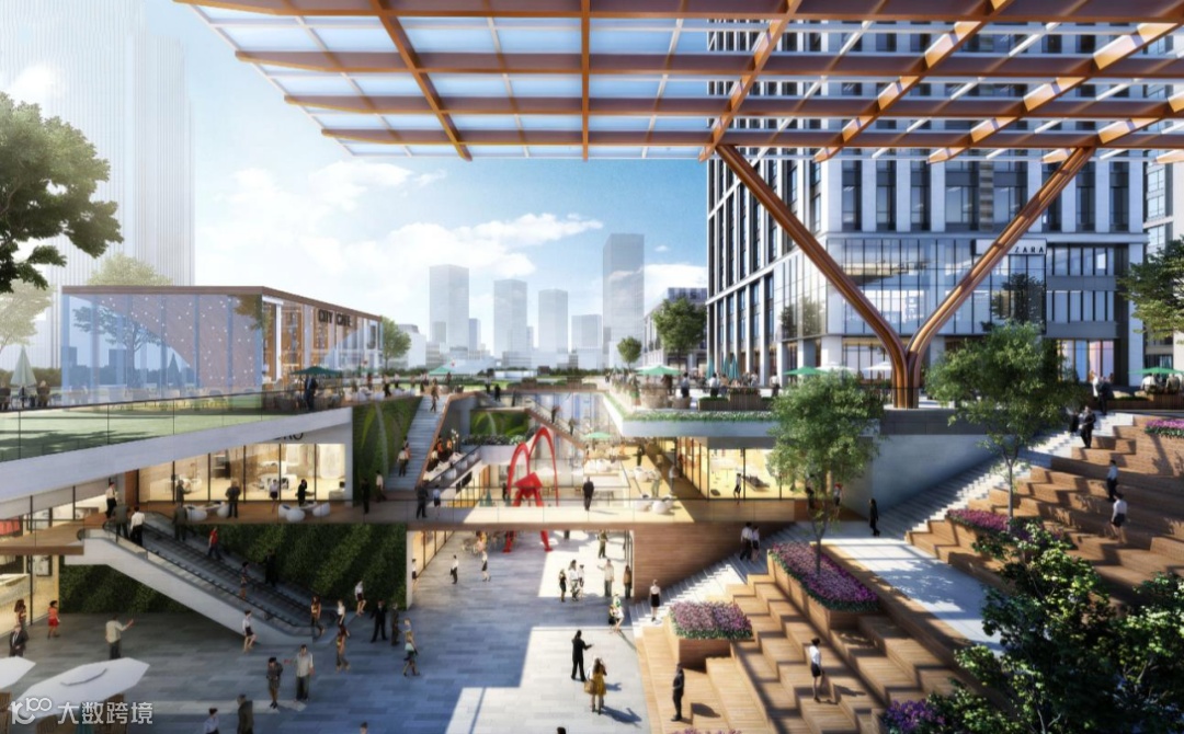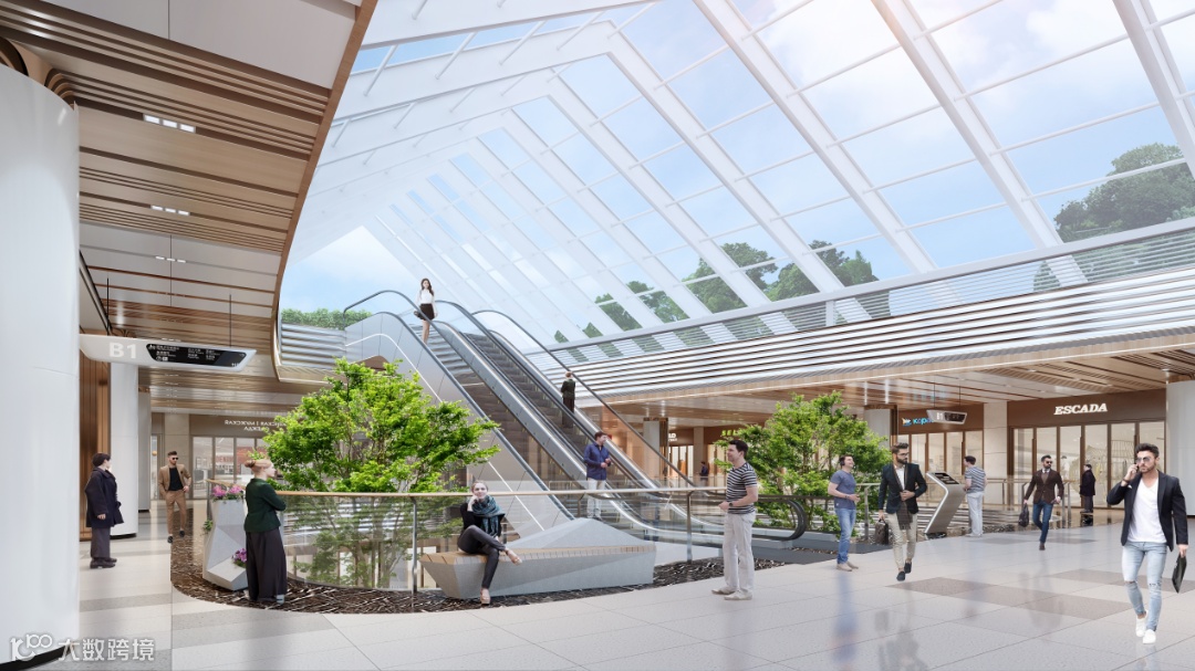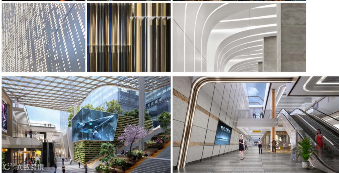 结合空间的高低错落和室内外的交叉,让空间立面多一些山河壮丽的肌理感,结合绿色植物,赋能空间活力。未来将打造商务轴心上的商务社交及休闲服务中心。