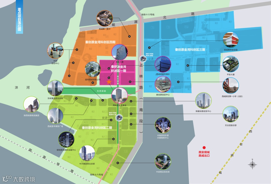 秦创原·金湾科创区位于西咸新区大西安新中心轴线北端能源金贸片区,是大轴线核心承载区,分为四期建设。其中,