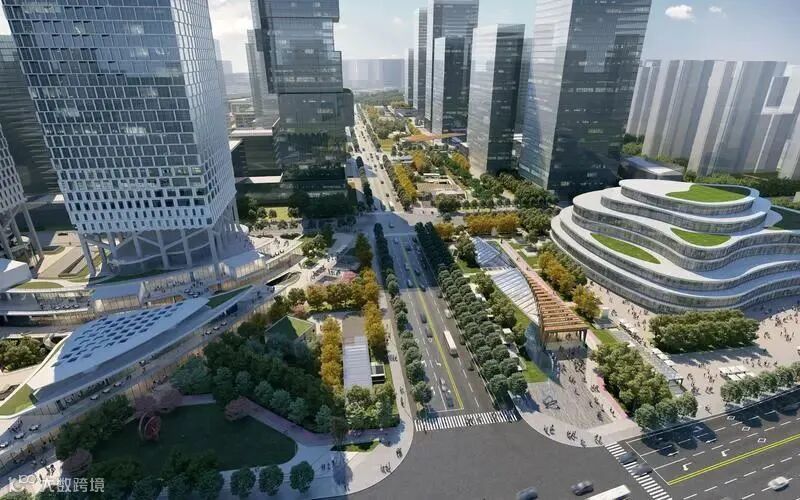 在这里,地上,突出小街区、密路网,建设以慢行、绿色公交为主的街道;地下,环隧+综合管廊,实现地下车流和市政流全覆盖连通。同时,地铁站点与南北绿廊串联,形成“地铁+公交”无缝接驳。特别是地下环隧,行车四通八达,与多家企业总部商务楼宇的地下停车场连通,可以分担地面上至少50%的车流,能有效缓解城市交通拥堵。