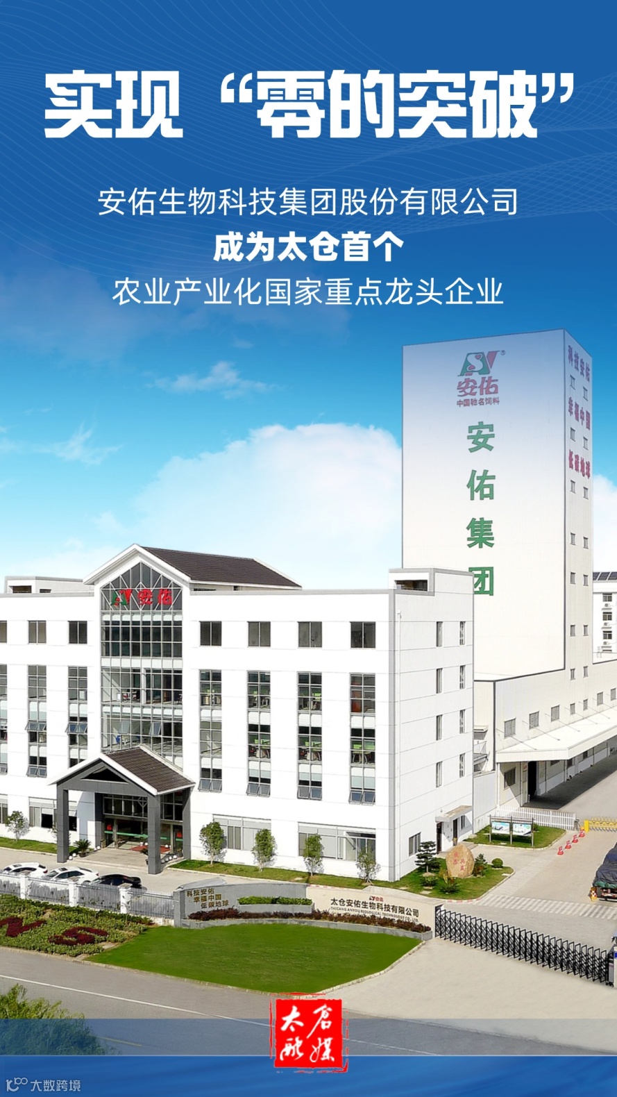 近日,农业农村部、国家发展改革委等部门联合印发通知,公布第八批农业产业化国家重点龙头企业名单,安佑生物科技集团股份有限公司榜上有名,成为我市首个农业产业化国家重点龙头企业。