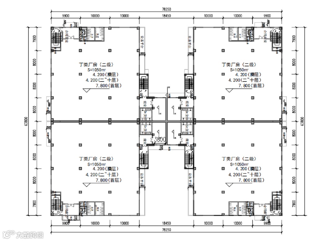 一楼承重2T/㎡、标准层800Kg/㎡、顶楼800Kg/㎡