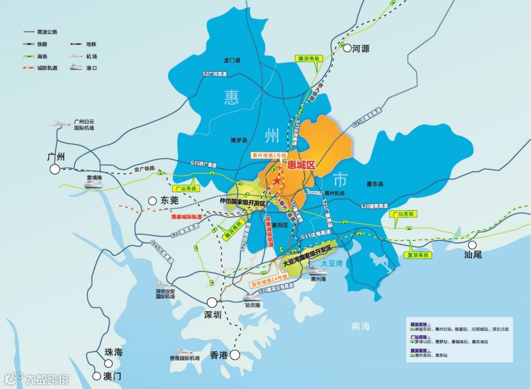 随着“丰”字交通发展战略推进,区域内两城轨 一高铁 一机场 多高速,一小时畅游深莞惠,出行畅无忧!(莞惠/深惠城际、广汕高铁、平潭机场、惠大高速/潮莞高速/甬莞高速等)