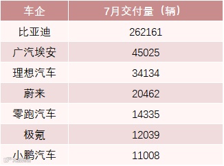 “蔚小理”等造车新势力7月交付量均回到了1万辆以上水平。