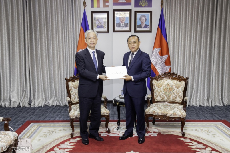 2024年7月8日,汪文斌大使向柬埔寨外交与国际合作部礼宾司司长欧克平递交国书副本。