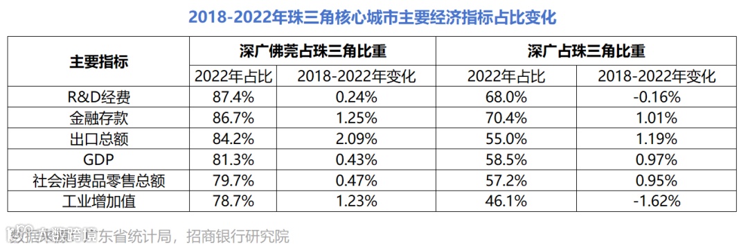 广州、深圳、佛山、东莞四大城市在GDP、研发经费、金融存款等方面占据绝对优势。然而,中心城市的“虹吸效应”若不能转化为辐射带动,将可能导致周边城市发展滞后。