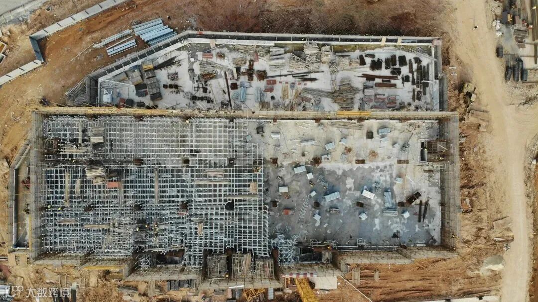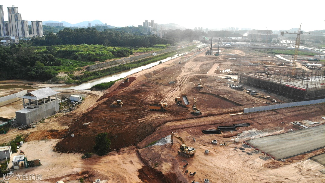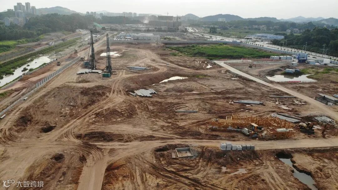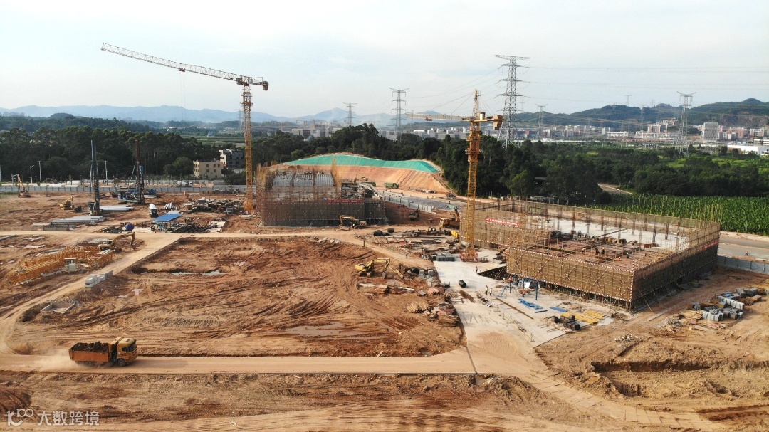 总包主体施工中,展示区装修、门窗、市政、消防施工中。