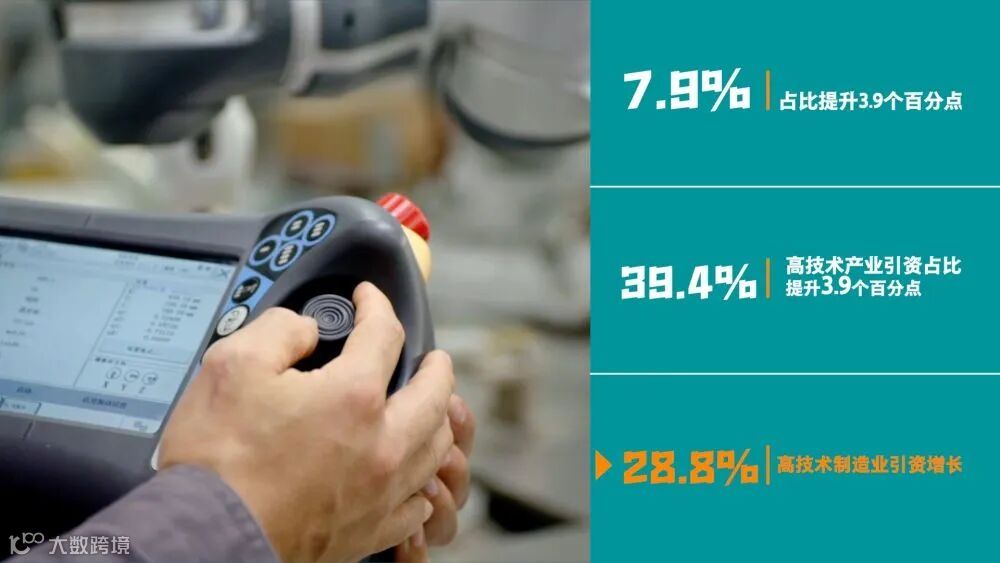 引资质量持续提升,高技术产业引资增长7.9%,占比提升3.9个百分点达到39.4%,其中高技术制造业引资增长28.8%。