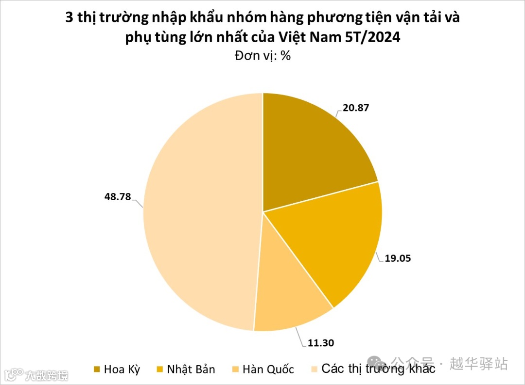 今年前5个月,美国是越南最大的出口市场,营业额为12.9亿美元,同比增长19.2%。仅在5月份,越南就向美国出口了近2.6亿美元,比去年同期增长了10%。该市场占2024年第5个月汽车和零部件出口总额的 20.87%。