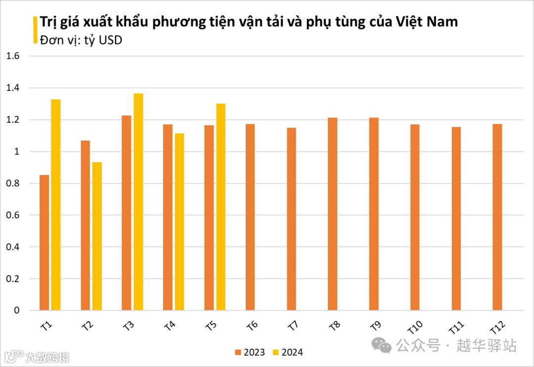 据越媒报道:根据海关总署最新更新的统计数据,5月份,越南运输车辆和零配件出口额超过13亿美元,与上月大幅增长17%,与2023年5月相比增长11.8%。
