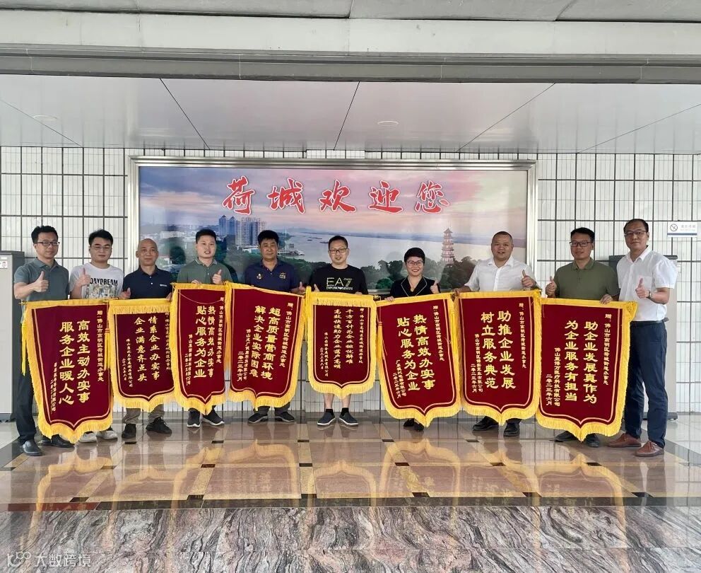 近日,荷城街道办事处收到来自辖区佛山图丽金属制品有限公司、佛山康托尼金属制品有限公司、佛山莱因新材料有限公司、广东德沁电器有限公司、新启航半导体有限公司、佛山龙广健康科技有限公司、佛山市高明区锦实置业有限公司、佛山蓝博万医疗科技有限公司等8家进驻中南高科·高明智汇城的企业送来的“超高质量营商环境、解决企业实际困难”“高效主动办实事、服务企业暖人心”“千方百计为企业排忧解难、高效快速助力企业落户高明”“情系企业办实事、企业满意齐点头”等锦旗。
