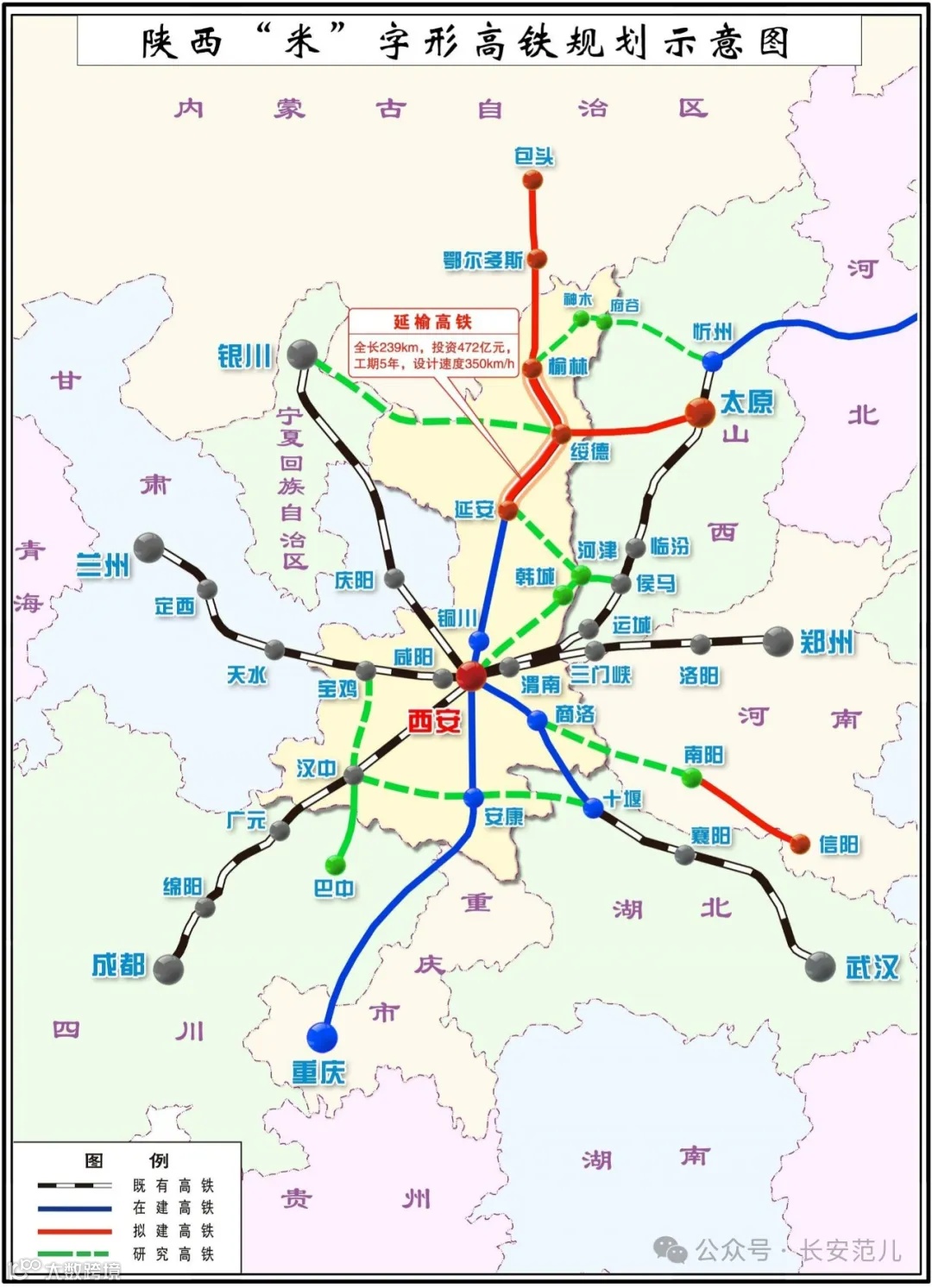 陕西“米”字型高铁网各在建线路建成时间定档:西延高铁2025年、西康和西十高铁2026年、康渝和延榆高铁2028年。