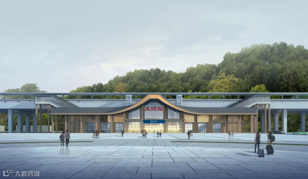 站房以“秦楚驿站,锦绣太河”为设计立意,建筑造型与山水相融,体现地域风光,舒展的人字形坡屋顶“如鸟斯革,如翚斯飞”,展现出传统建筑神韵。