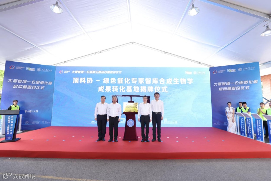 在与会嘉宾的见证下,当天市、区领导与上海交大领导共同启动“大零号湾一公里孵化器”揭幕仪式。“顶科协—绿色催化专家智库合成生物学成果转化基地”也正式揭牌。