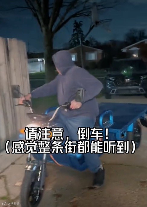 在美国,三蹦子可以上摩托车牌照,并享有与摩托车相同的路权。一位负责上牌的警察表示,他从未见过有人将皮卡的斗安装在电动车上,认为这非常酷。