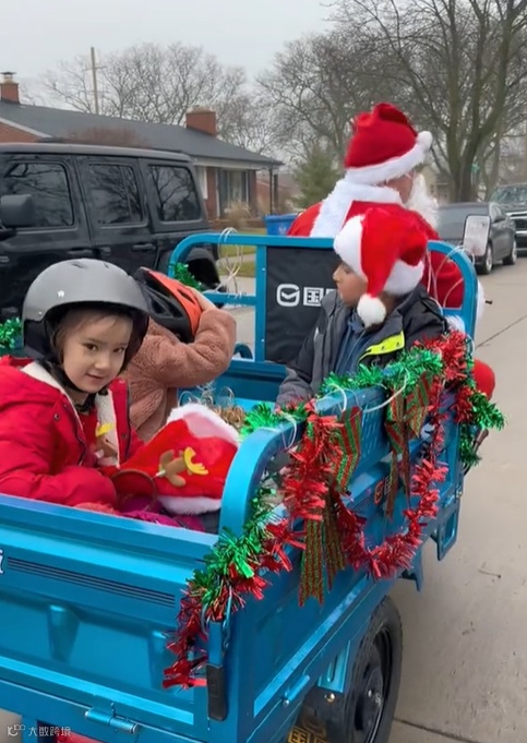 在圣诞节当天,Bobo的公公将三蹦子装饰成圣诞车,自己装扮成圣诞老人,为小区居民派送礼物。这一行为不仅体现了三蹦子的实用性,也展示了它在社区活动中的趣味性。