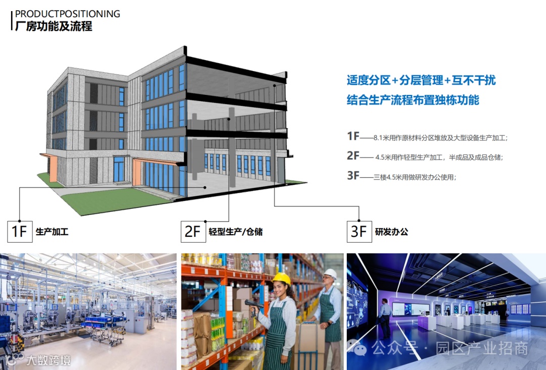 单体建筑三层、多层丁类厂房,厂房多为双拼和多拼户型。