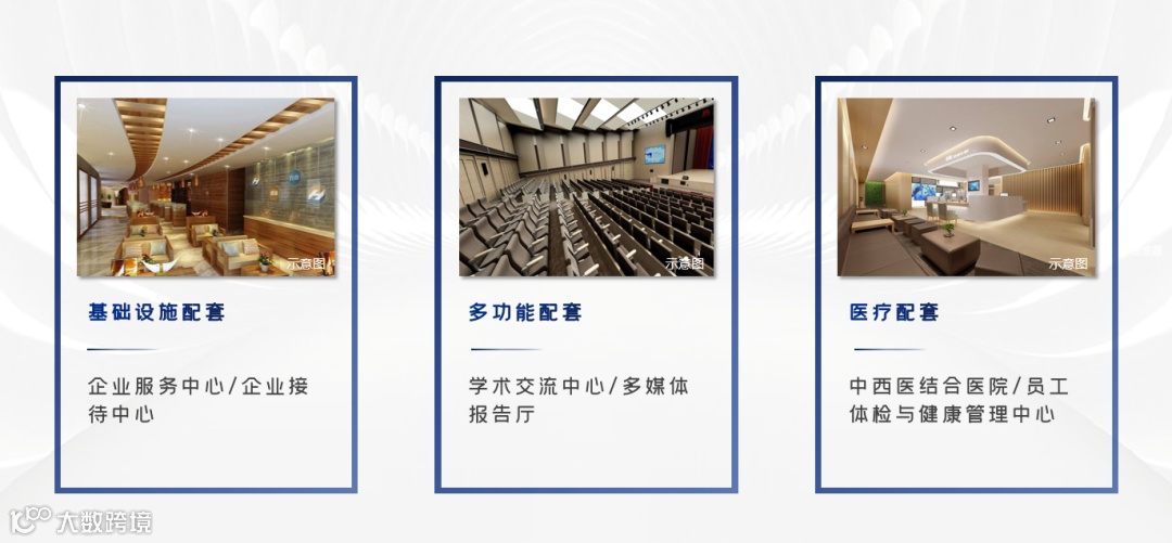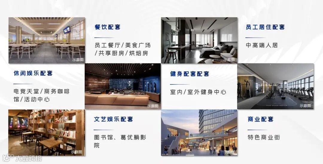 【项目配套】:员工餐厅、宿舍、室内外健身中心、图书馆、特色商业街、企业服务及接待中心、学术交流中心、多媒体报告厅、中西医结合医院、员工体检中心