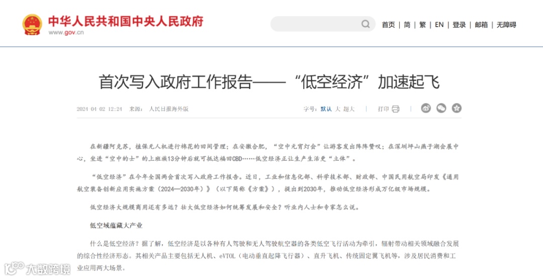 “低空经济”在2024年被全国两会首次写入政府工作报告。近日,工业和信息化部、科学技术部、财政部、中国民用航空局印发《通用航空装备创新应用实施方案(2024—2030年)》,提出到2030年,推动低空经济形成万亿级市场规模。