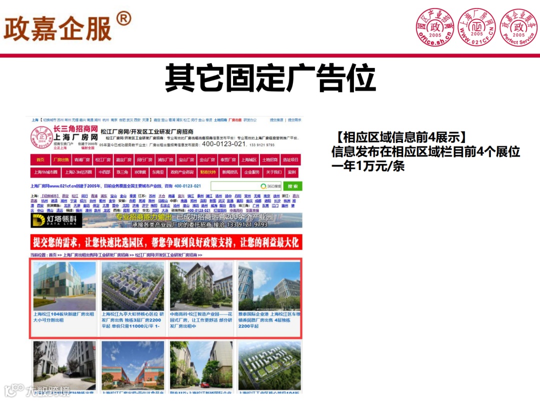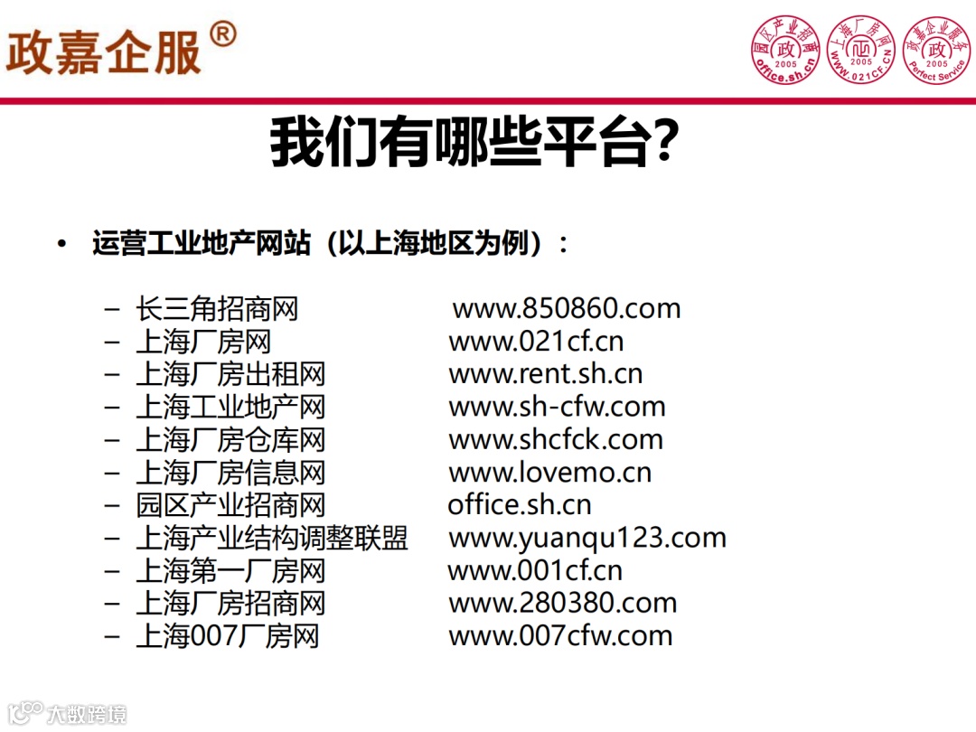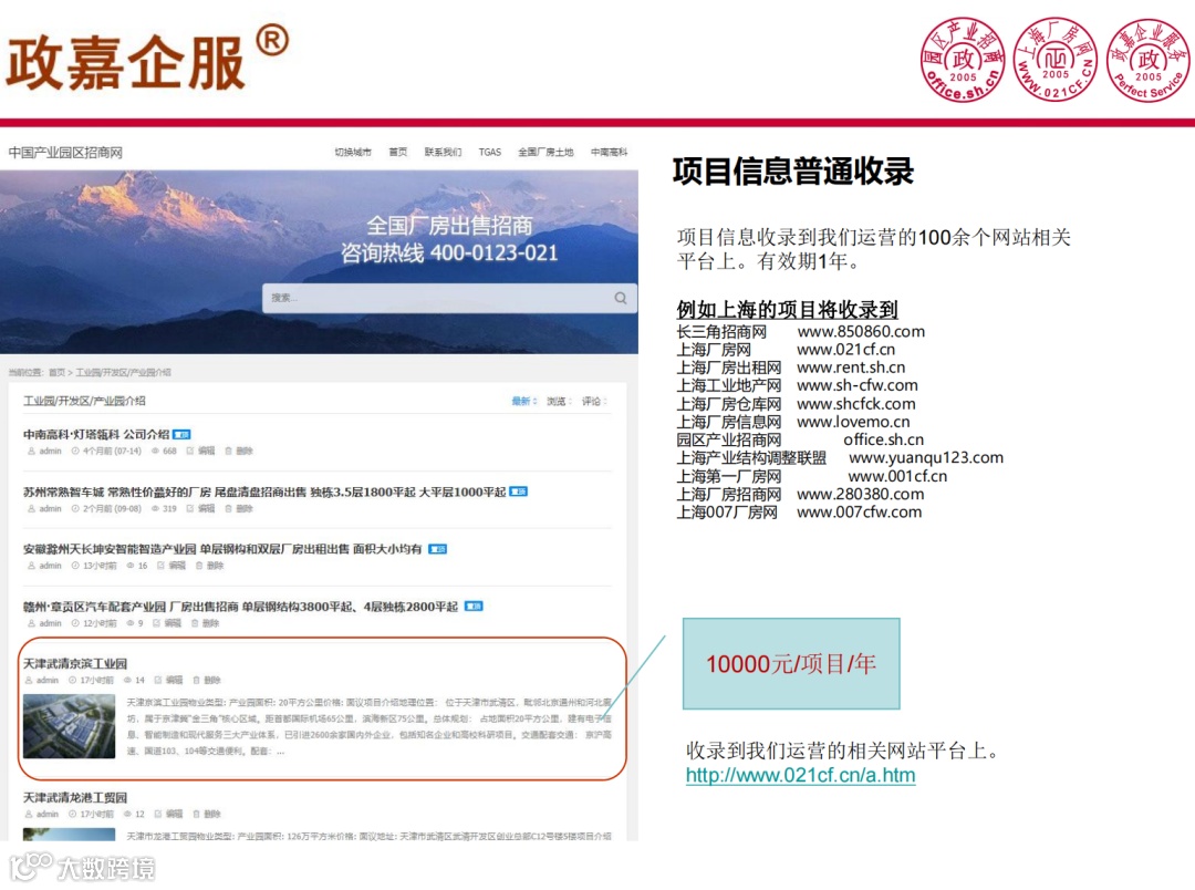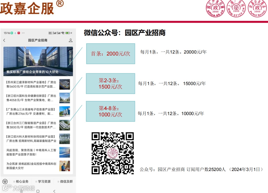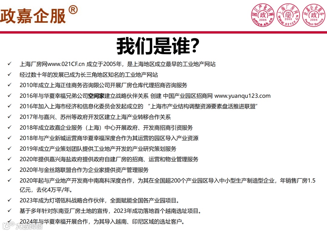 专业有效的产业园载体招商平台,以高效专业著称。现向全国产业园区提供专业招商运营代理服务。利用我们强大招商团队和数字化平台招商,确保高质量、快速完成招商。【重点承接上海、苏州、无锡、嘉兴、杭州、宁波等区域产业园区项目】