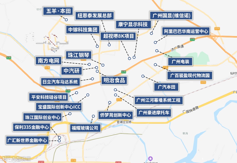 | 增城部分企业分布图(来源:搜狐房产)