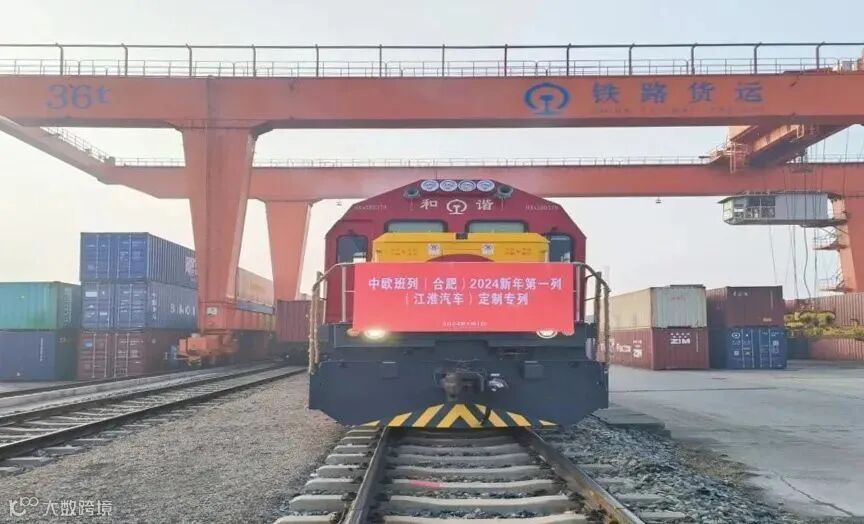 1月1日,新年首列中欧班列(合肥)从合肥北站物流基地出发,开启了2024年的新征程。这趟班列是江淮专列,满载110TEU驾驶员座椅,仪表板总成等安徽本土货物,将经阿拉山口口岸发运至俄罗斯吉洪诺沃。