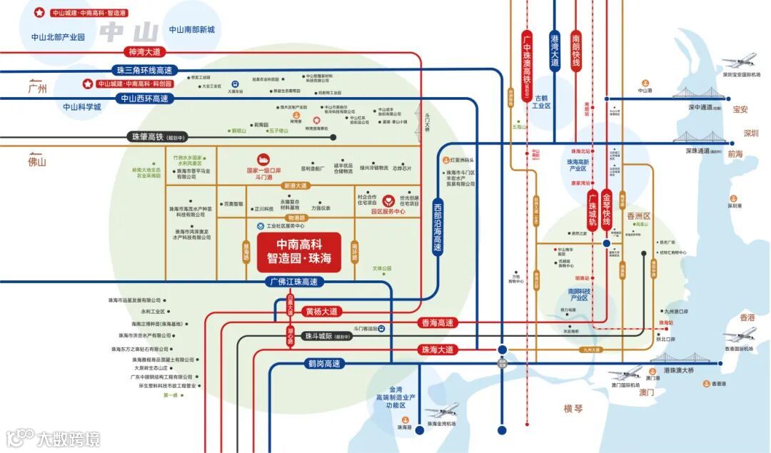 项目距离西部沿海高速、广佛江珠高速斗门收费站约8公里;可通过香海高速,经深中通道(预计2024年6月通车)、深珠通道(规划中),快速直达深圳宝安、前海。
