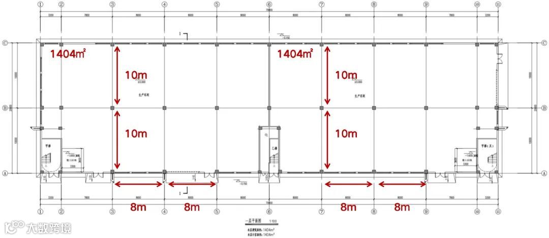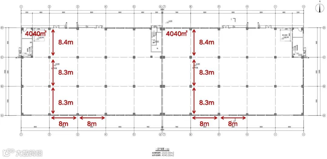 4层层高:1F 8.01m、2F 8.01m、3F 3.75m、4F 3.5m