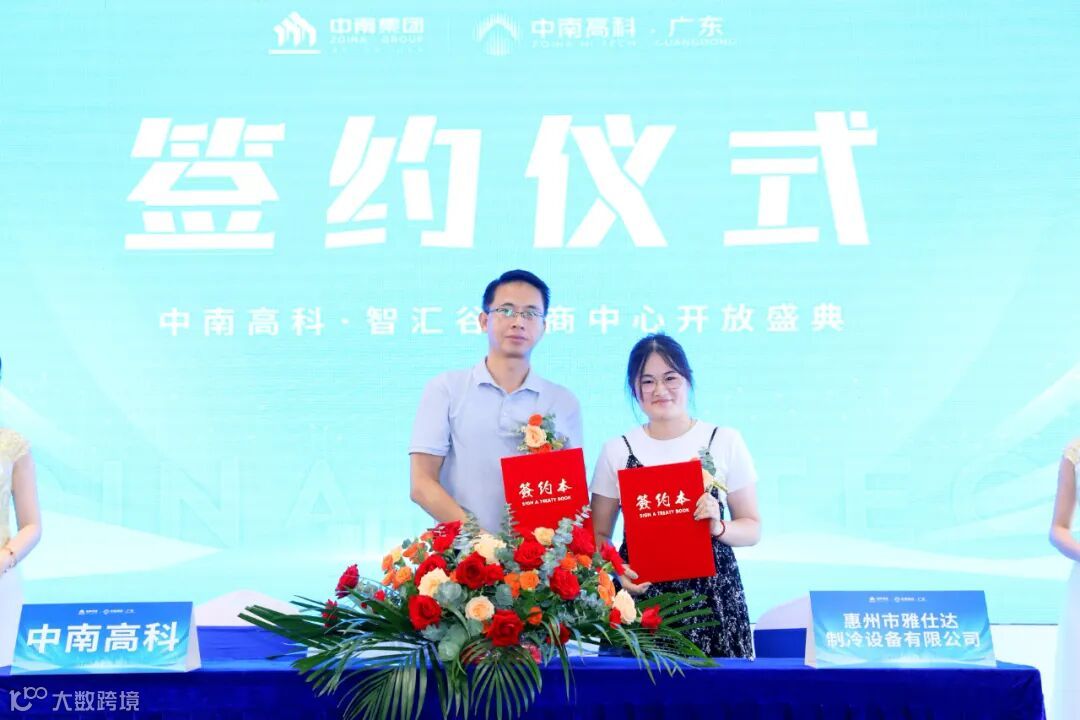仪式现场,在各位来宾的见证下,中南高科广东公司深莞惠片区总经理张毅屏先生与惠州市雅仕达制冷设备有限公司、深圳市嵩鹰科技有限公司、深圳市戴盛通信技术有限公司、惠州东润鑫五金有限公司签下企业进驻中南高科·智汇谷(惠州)的合作协议书。