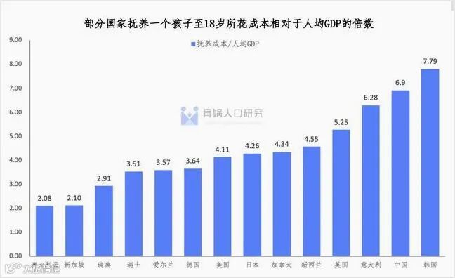 总的来看,在中国,养一个孩子成本是美国的6倍,日本的1.5倍。