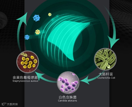 银纤维拥有出色的抗菌功能,能消除650种以上的病原体,抑制细菌滋生,消除臭味。其抗菌性能源自银离子,通过与微生物的呼吸物质结合,使微生物窒息而亡。JLSUN®银纤维经检测证实,在洗涤50次后对金色葡萄球菌、白色念珠菌和大肠杆菌的抑菌率大于99.9%。