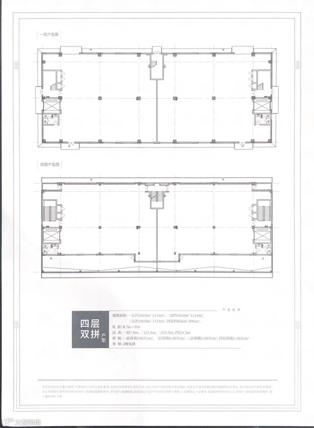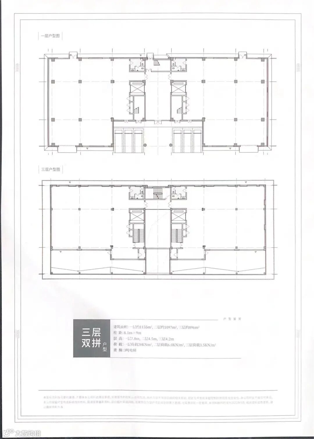 二楼层高5.8m/4.5m,承重800kg/600kg;