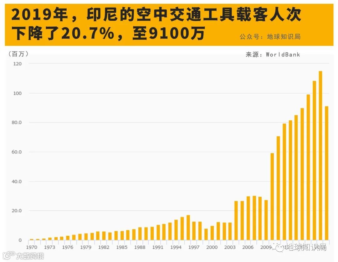 鉴于印尼作为一个跨越三个时区的“万岛之国”,面临着铁路和公路基础设施不足、轮渡效率低下以及跨海大桥建设成本高昂等挑战,该国不得不寻求一种更为快捷的交通方式以促进各岛屿间的经济交流。因此,印尼将目光转向了航空业。随着全球化的推进,印尼商业民航在本世纪最初的20年内实现了迅猛增长。据统计数据显示,印尼的乘机旅客数量从2000年的1000万人次激增至2018年的1.15亿人次,实现了惊人的十倍增长。