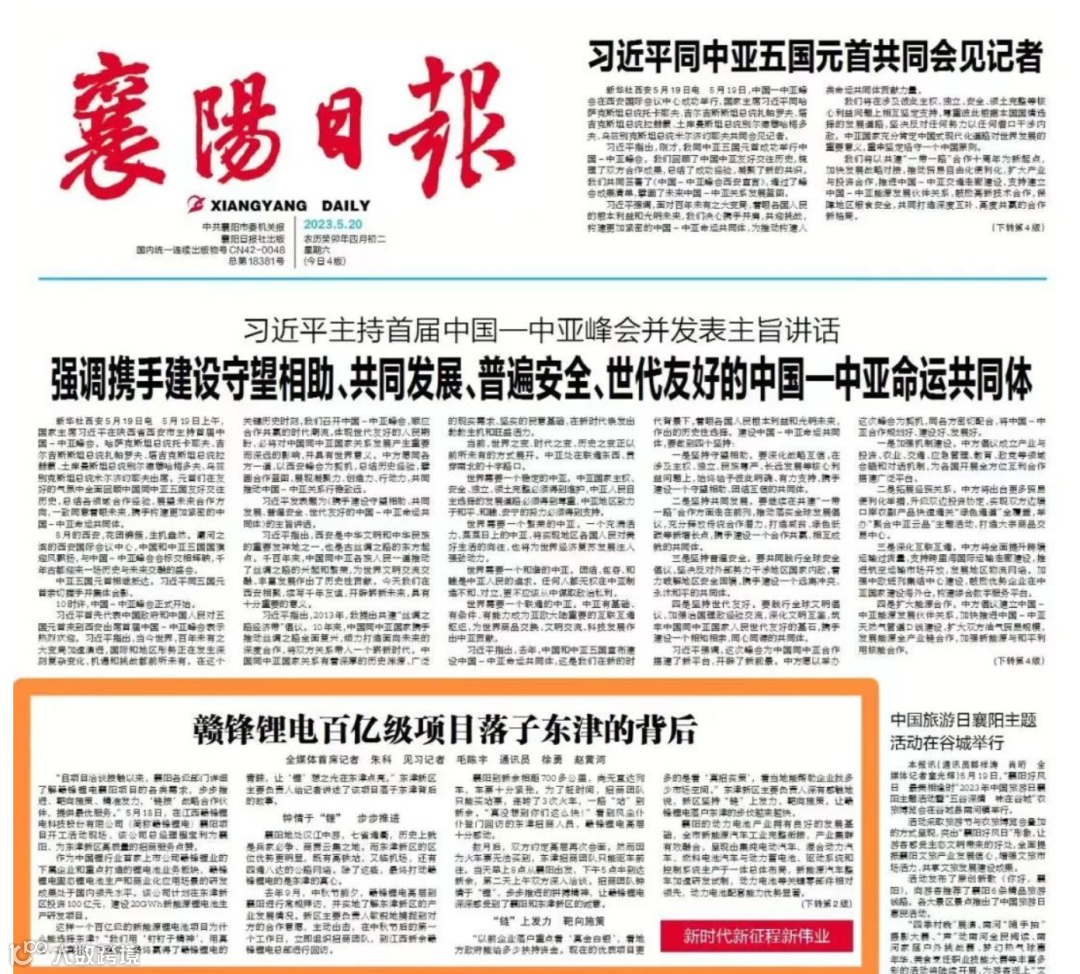 5月18日上午,2023年二季度襄阳市重大项目“三集中”活动在东津新区主会场举行。此次“三集中”活动共有19个项目,总投资284.39亿元。其中,开工项目8个,竣工项目5个,签约项目6个,开工项目中,最亮眼的是江西赣锋锂电科技股份有限公司襄阳项目。该项目位于东津新区,总投资100亿元,征地约600亩,建设20GWh新能源锂电池生产研发项目。