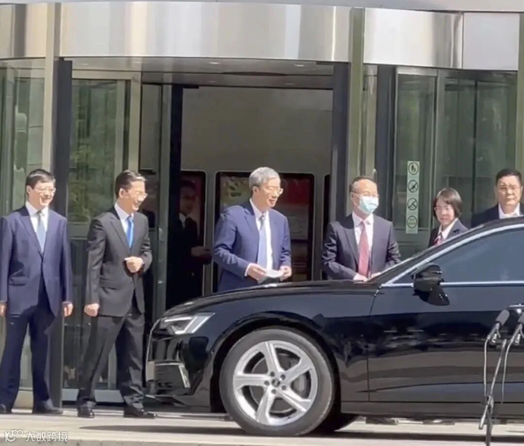 9时30分前后,国务院副总理何立峰、中国人民银行行长易纲、中国人民银行党委书记郭树清、证监会主席易会满等先后乘车到达茂鑫大厦南楼。国家金融监督管理总局党委书记李云泽、银保监会副主席丛林等在门口迎接。
