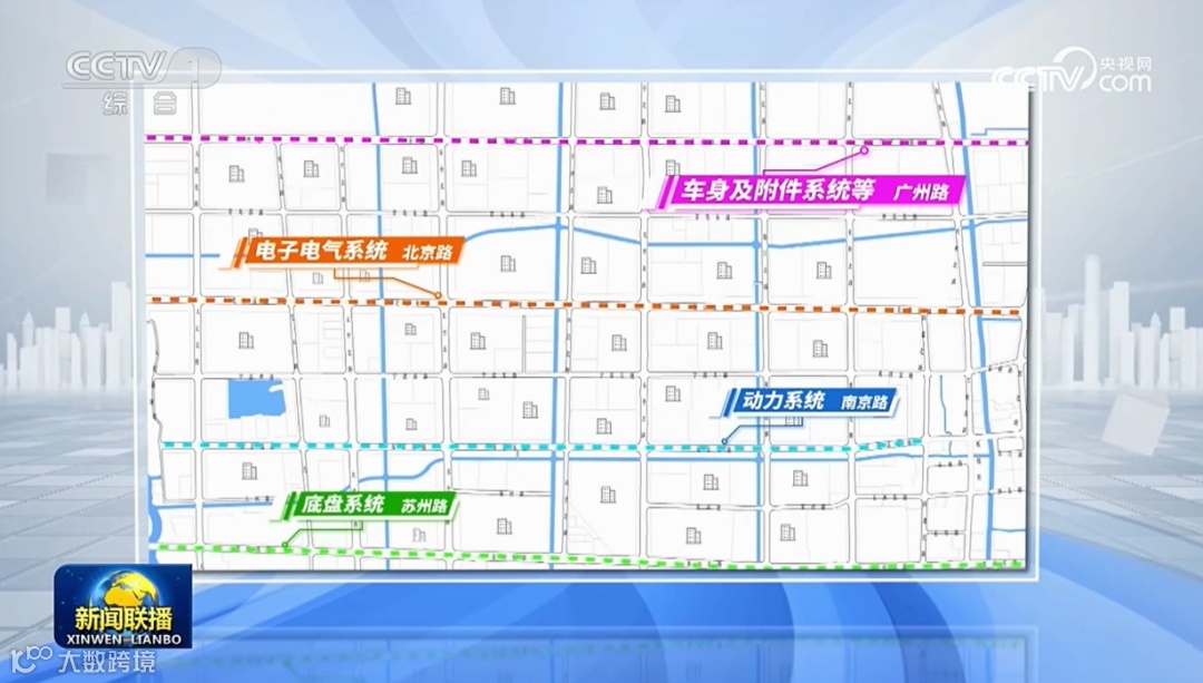 一条条马路,便是一条条产业链,在太仓的南京路、苏州路、北京路、广州路,都分别形成了汽车零部件的动力系统、底盘系统、电子电气系统、车身及附件系统等完整的产业生态,央视《新闻联播》就此进行了报道。