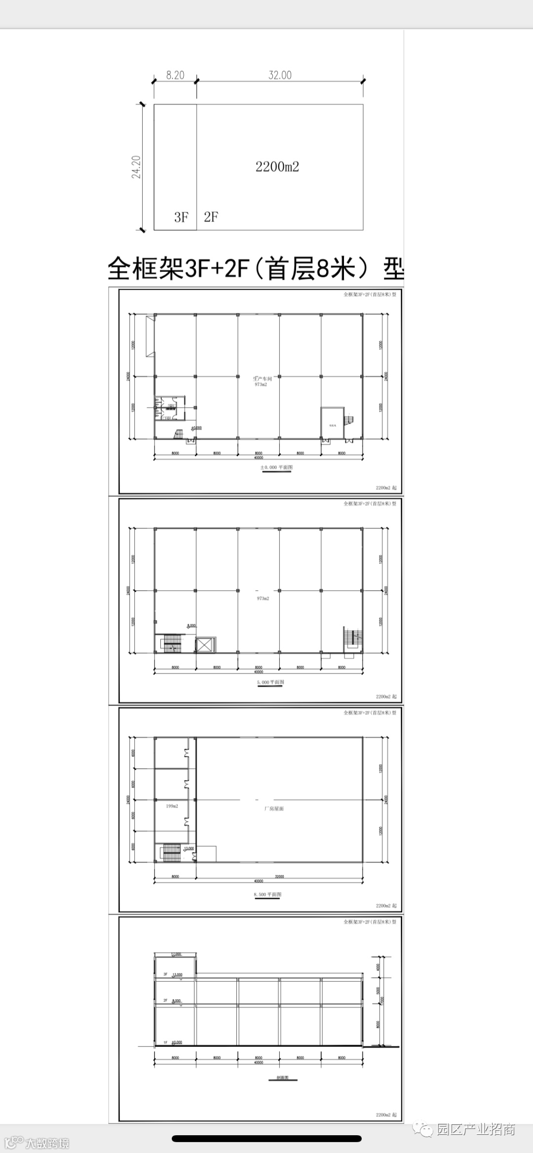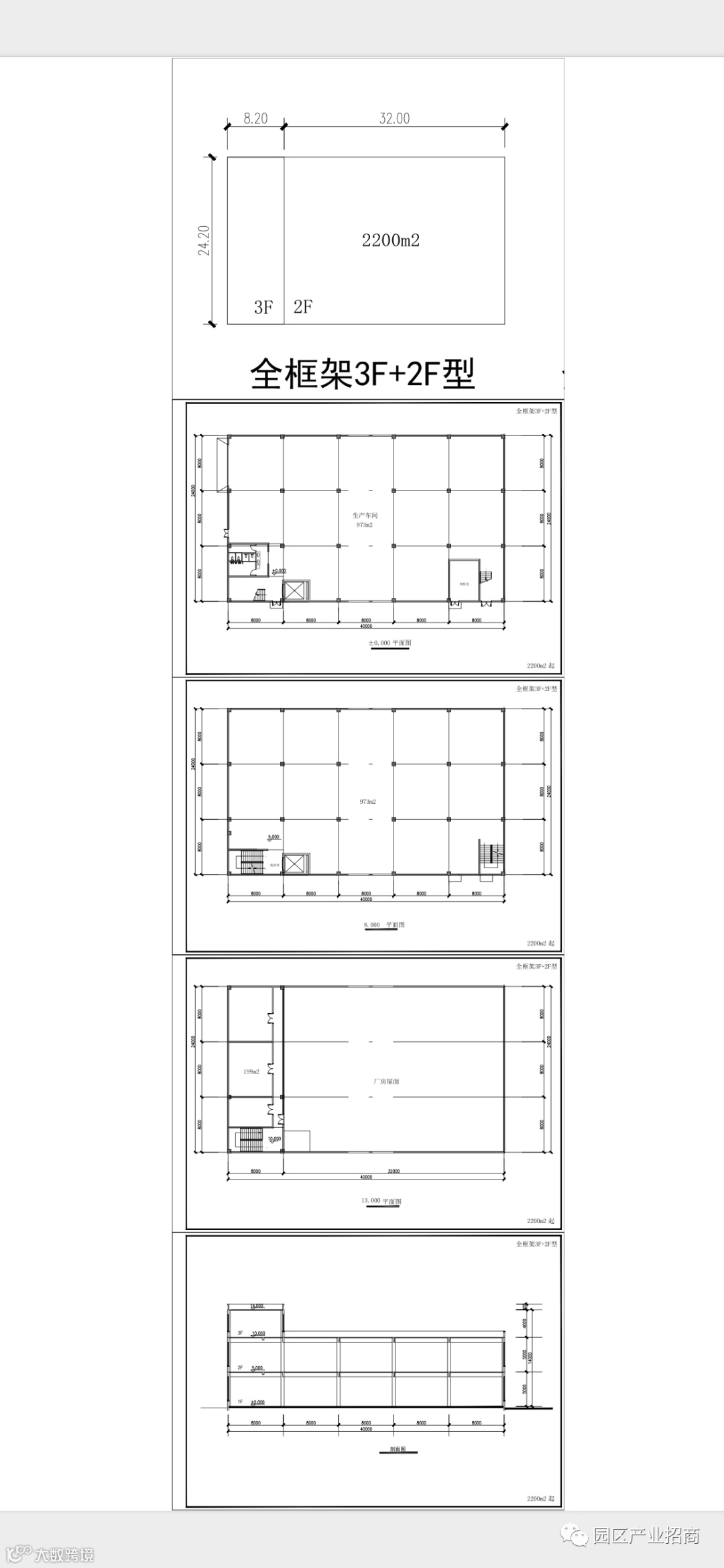 A全框架3F+2F(首层8m二楼5m三楼4m)
