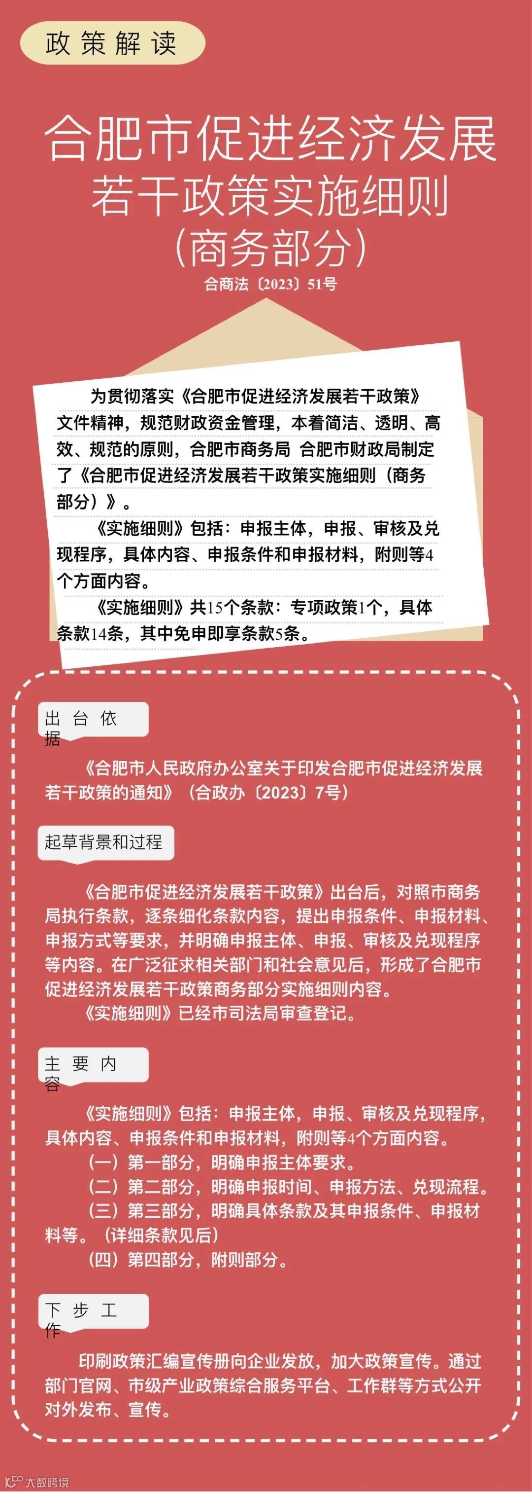 近日,《合肥市促进经济发展若干政策实施细则(商务部分)》印发,实施细则将从15个方面实施奖补措施,促进合肥市经济发展。