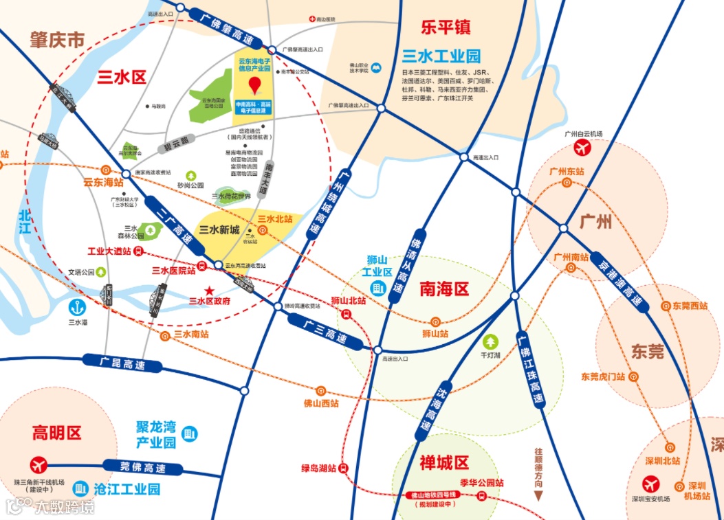 中南高科·高端电子信息港位于广东省佛山市三水区,交通便利,周边公路、港口、机场、货运站等生活设施一应俱全,为您的工作和生活提供便利。