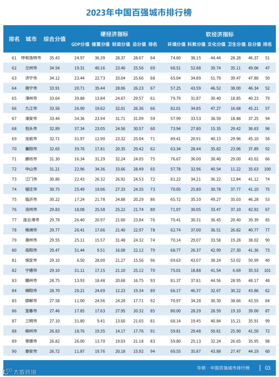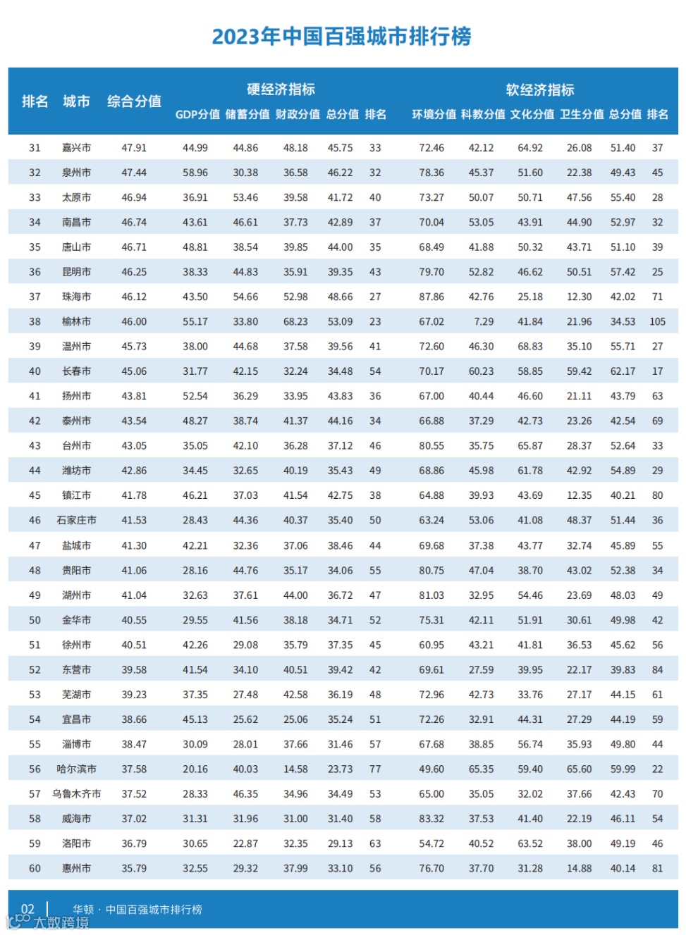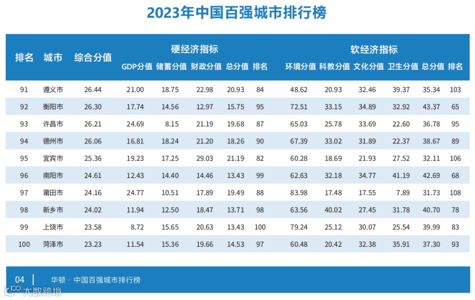 2023年中国百强城市: