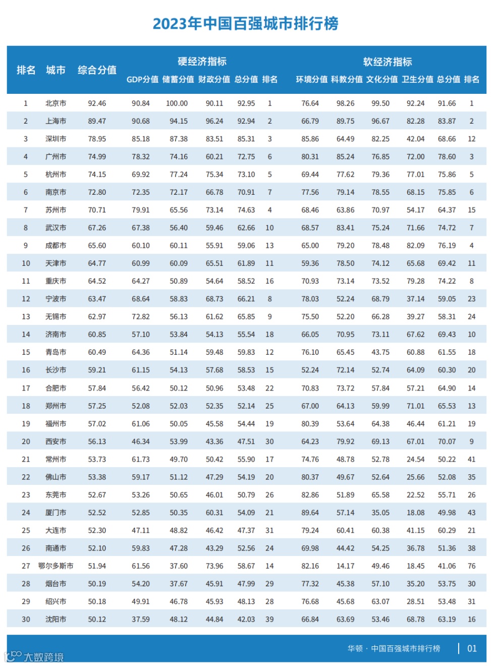 从硬经济指标来看,北京、上海、深圳、苏州、杭州、广州、南京、宁波、无锡、武汉居前十位。