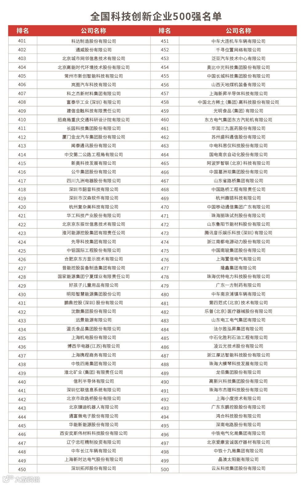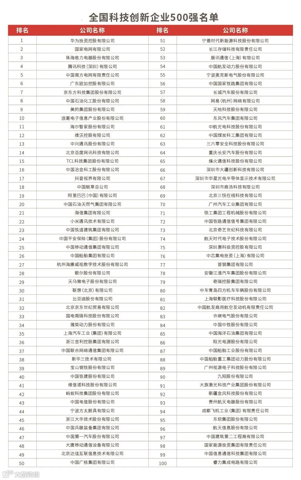 招商必备!全国科技创新企业500强榜单发布,哪些上榜?