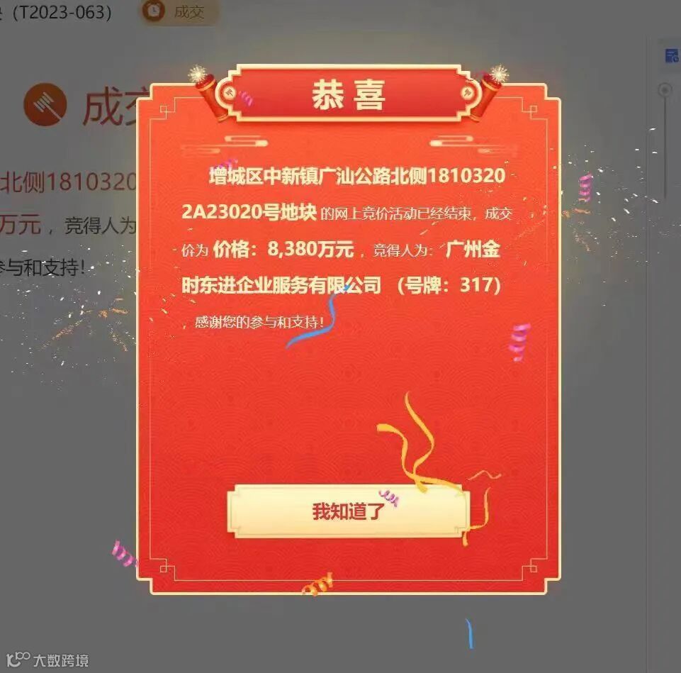 中新镇又一地块成功摘牌