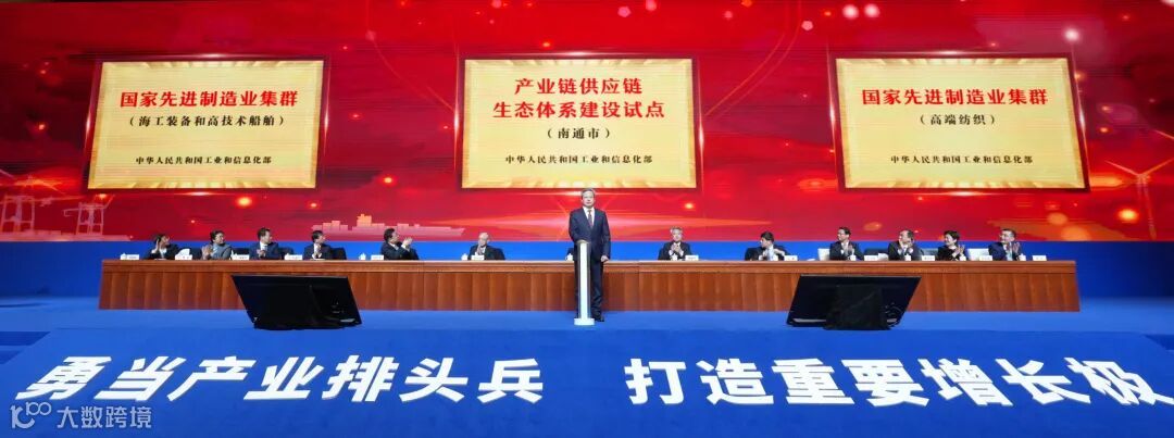 会上,吴新明为海工装备和高技术船舶、高端纺织两个国家先进制造业集群,以及国家产业链供应链生态体系建设试点揭牌。