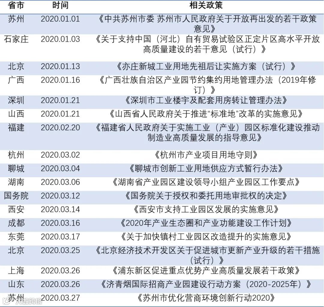 从中央到政府一直紧绷的“地盘”之弦依然出台大量工业用地集约创新新政,不论是“先租后让,达产出让”的利好政策,还是“税收、产值”的双向门槛,都可以毫不夸张得说,再不上车就晚了。以下我国各地市部分政策整理(见表2)。