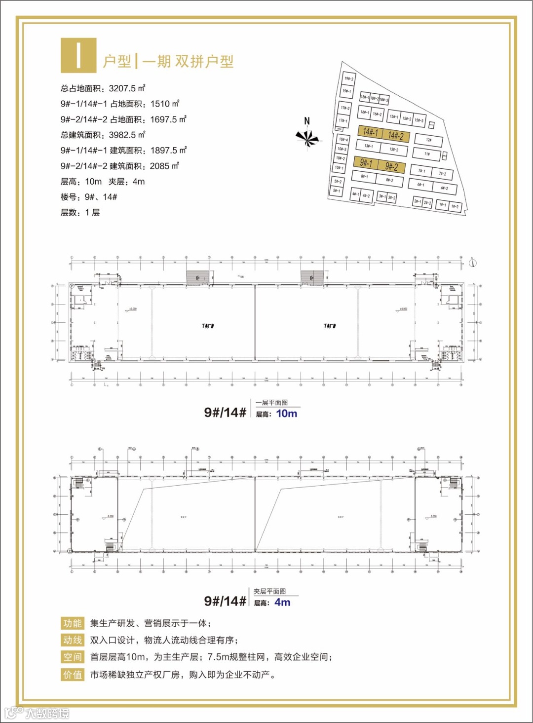 两层框架高标准厂房,首层层高8.1米,二层3.9米