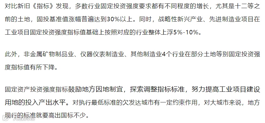 现在政府对于产业要求趋于更加严格,非常重视产业发展,所以就当前形势来看,《工业项目建设用地指标》调整是中央对产业布局的第一步。