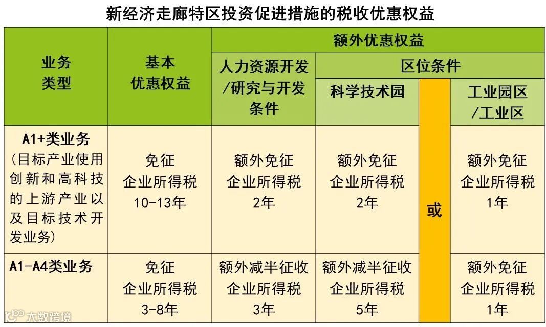 新经济走廊特区的投资优惠权益