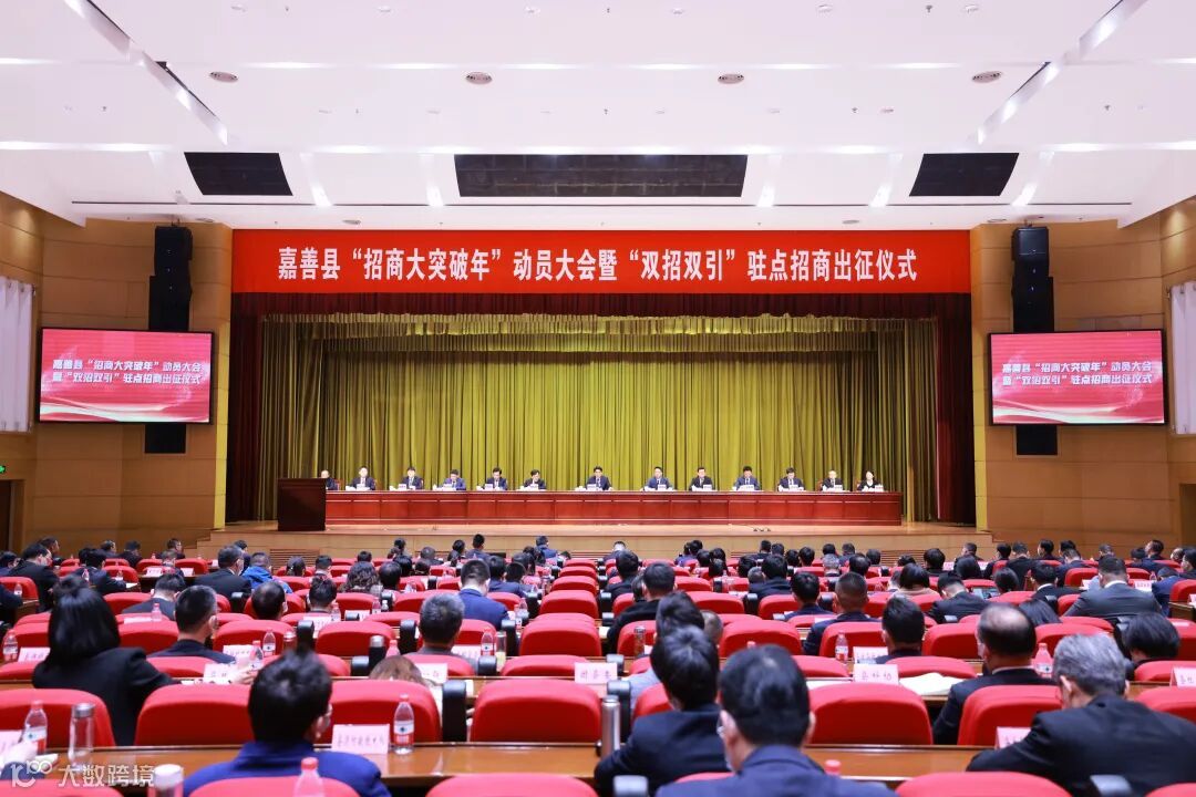 今天上午,嘉善县举行“招商大突破年”动员大会暨“双招双引”驻点招商出征仪式,吹响“全员抓招商、全力拼经济”的冲锋号。嘉兴市委常委、嘉善县委书记江海洋出席会议并讲话,强调要以动员大会为新起点,立即行动起来,以更强烈的责任意识、更饱满的精神状态、更有力的工作举措,努力推进“双招双引”工作提质增效,以招商大突破推动嘉善总量赶超、跨越发展,奋力实现千亿招商大突破。嘉善县委副书记、县长张锡锋主持会议。县领导钱学勤、顾新宇、楼向辉等参加。
